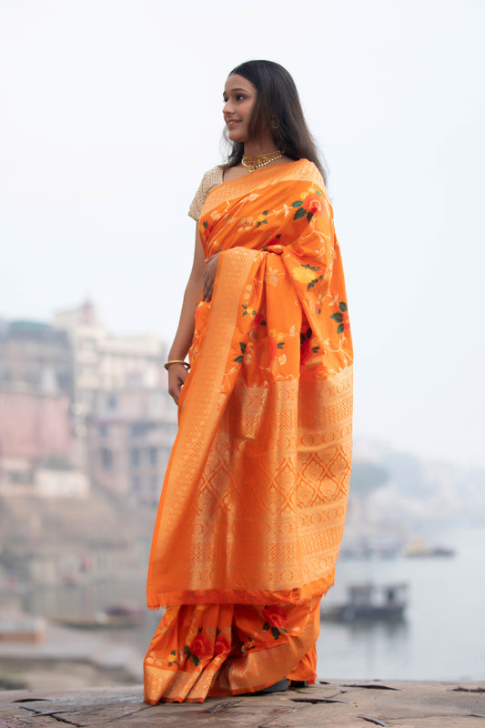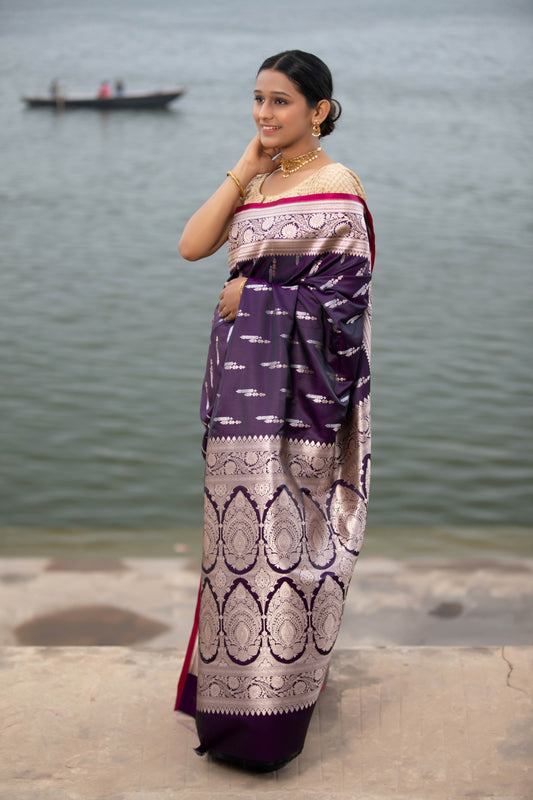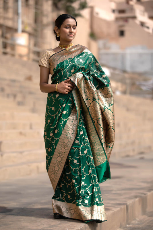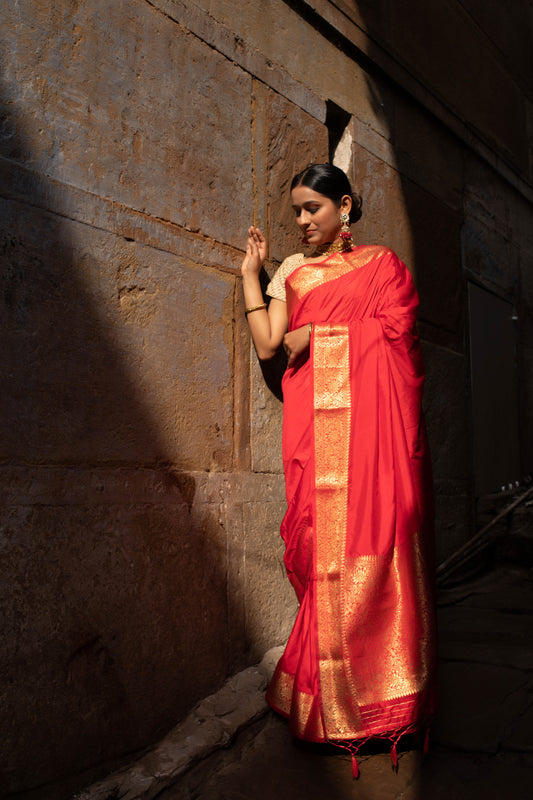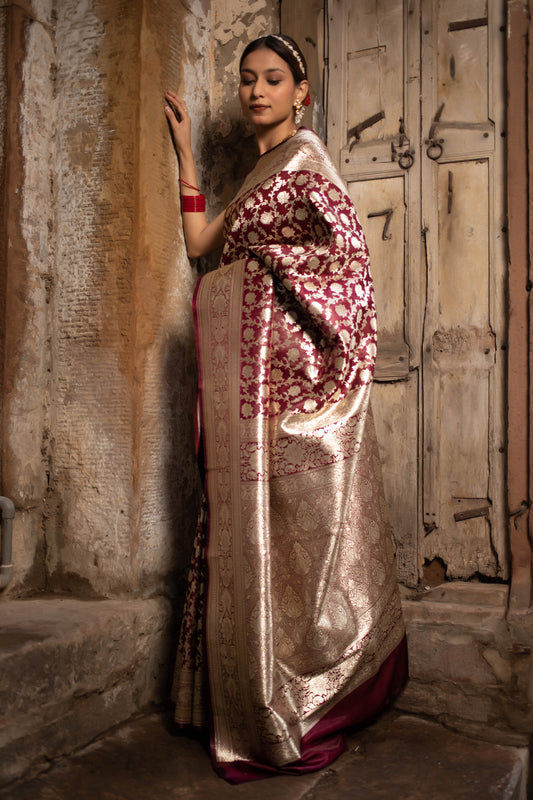 Royal Red Floral Zari Jaal Banarasi Silk Saree