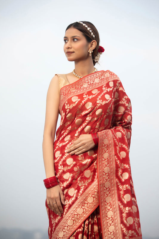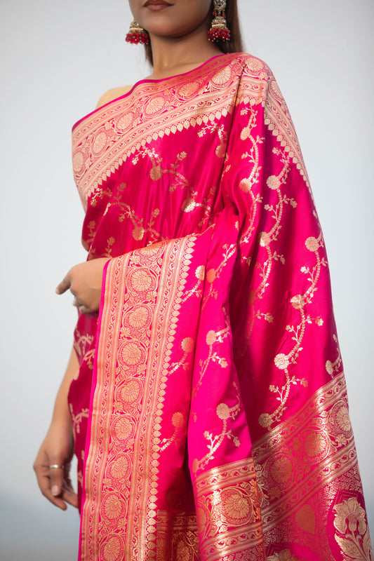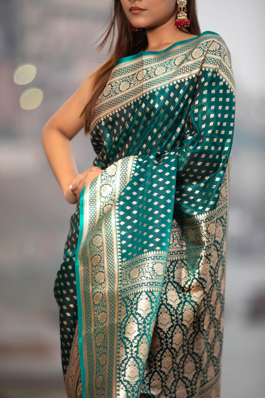 Mehndi Green Floral Jaal Katan Silk Banarasi Saree